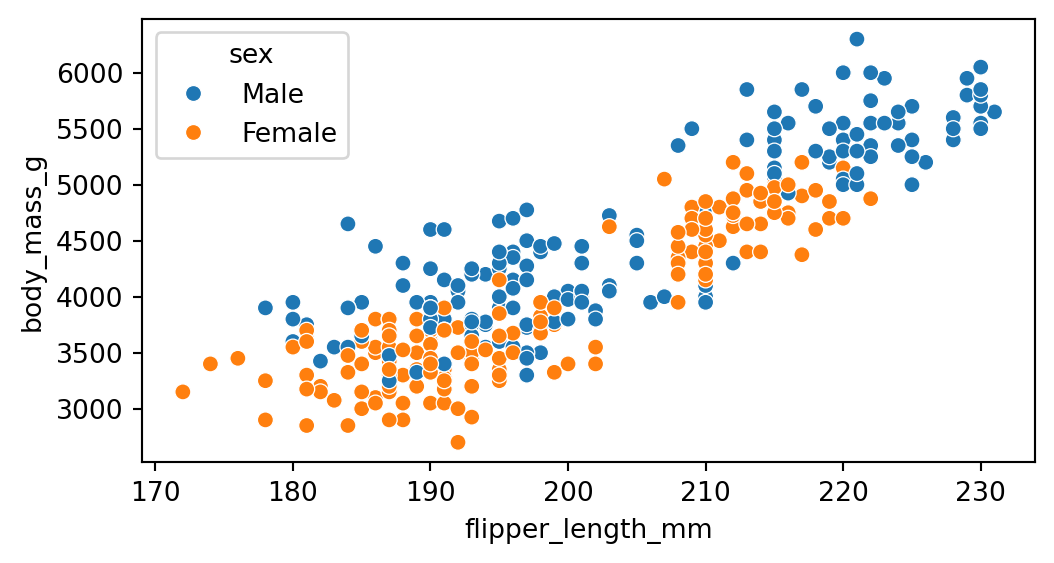 | species | island | bill_length_mm | bill_depth_mm | flipper_length_mm | body_mass_g | sex | |